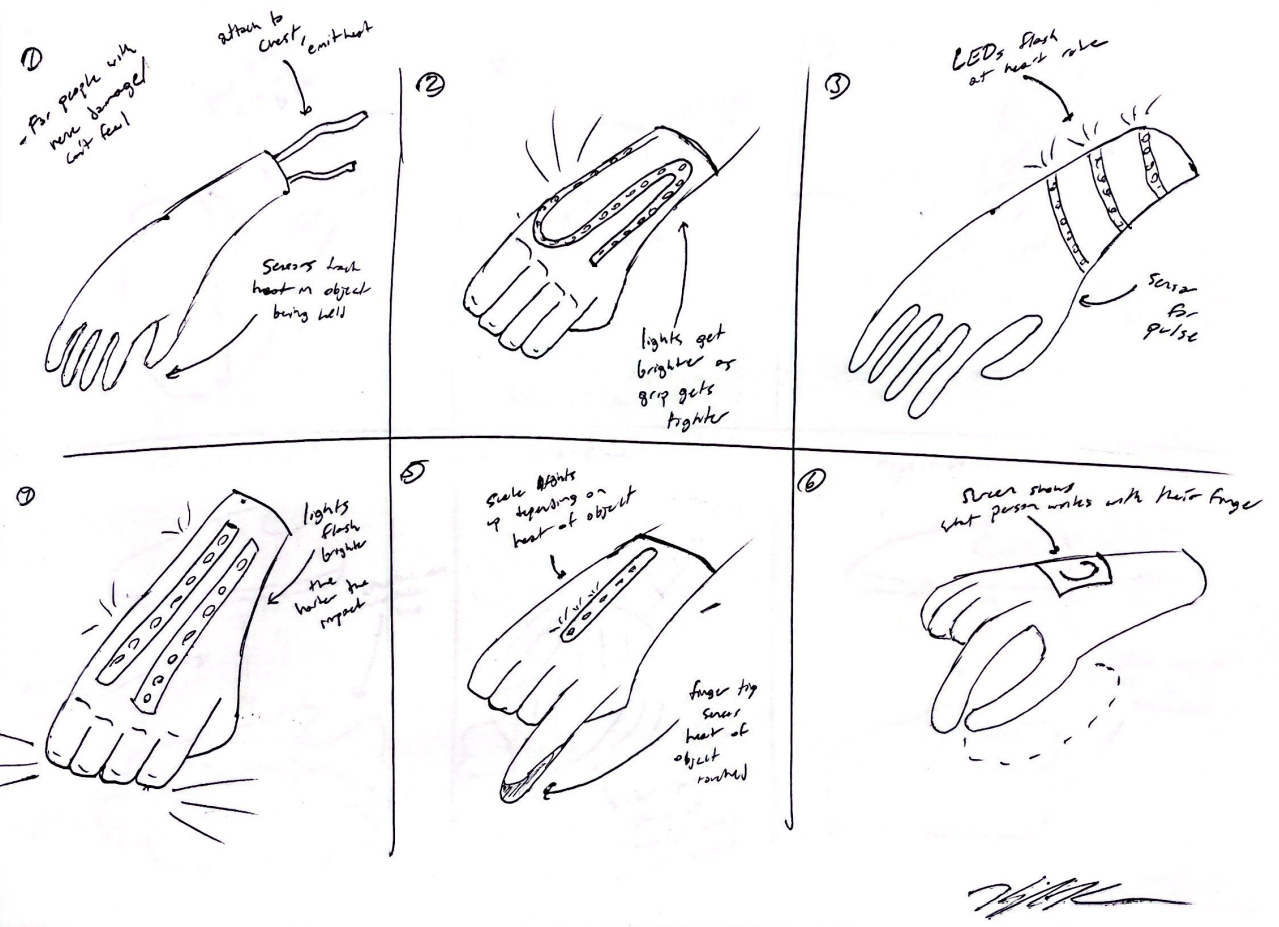 The design goal of this product was to enhance an emotion being expressed. One of the most effective ways of projecting emotion is light and color. With this being the case, these concepts were designed around the usage of LED strips and sensors that track the motion of hands. Hands were the chosen subject as they are commonly used when a person is expressing emotion